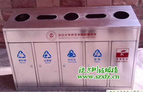 五分類不銹鋼垃圾桶 高校必備