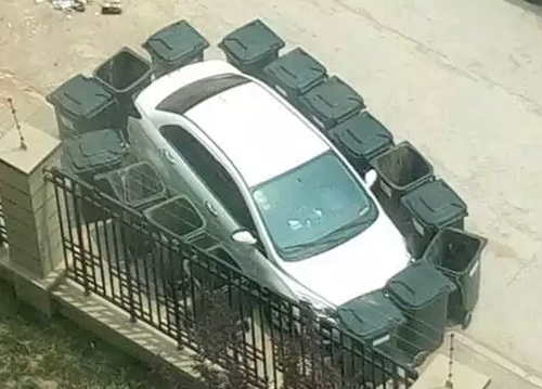 據介紹,停車處是放置小區垃圾桶的位置,私家車在此停放時垃圾桶較少,而等其他垃圾桶運來時只得放在路邊,小區保潔人員多次撥打車主電話無人接聽。當天中午,垃圾清運車倒完垃圾后,垃圾桶因無處可放擺在了私家車周圍。