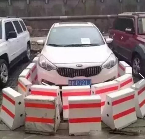 2016年6月,武漢一輛紅色雪弗蘭轎車的前后方被幾個大石墩圍住,該車主的停車位置靠近地下車庫出口,是消防通道,不能停車。此前物業曾多次勸阻和警告其不能在此停車,他卻并不聽勸,只能出此“下策”。