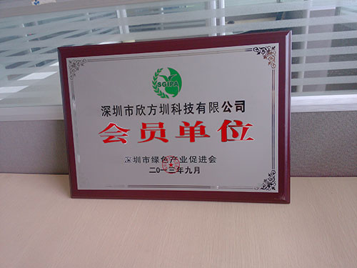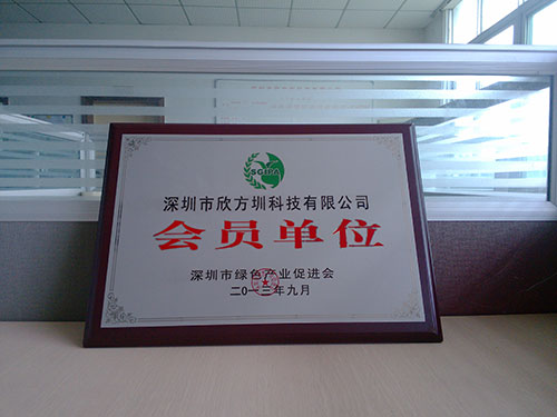2013年9月,經過深圳市綠色產業促進會的審核批準,欣方圳科技榮獲“深圳市綠色產業促進會會員單位”殊榮。