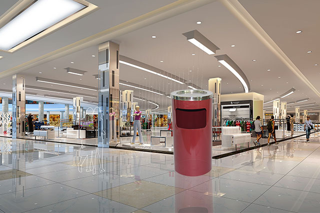 欣方圳商場(chǎng)室內(nèi)不銹鋼垃圾桶