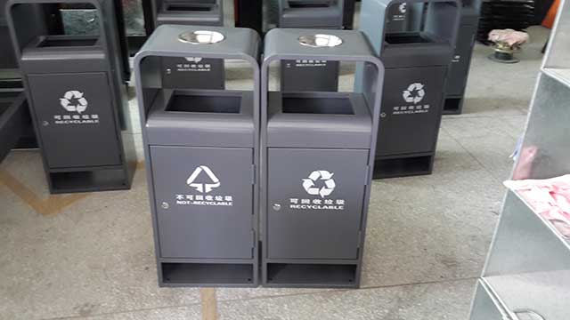 欣方圳戶外鋼制垃圾桶靜電粉末噴涂工藝,雙層防銹,漆面色澤耐久。