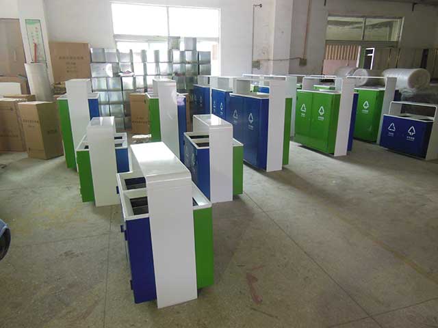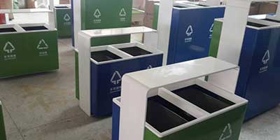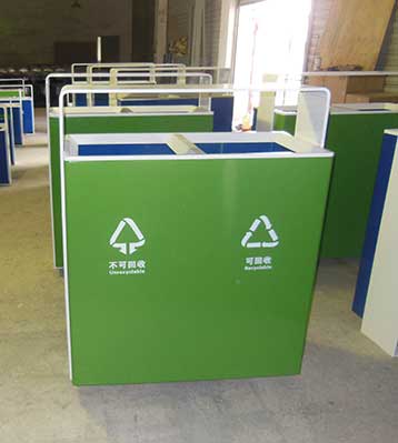 欣方圳鋼制戶外分類垃圾桶均選用優質的冷軋鋼板經噴砂處理去油去銹后,鋼板表面抗紫外線丙稀酸油漆多層噴涂,