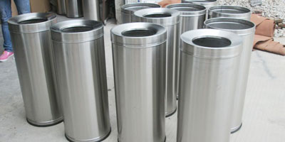 欣方圳高頭斜口煙灰桶投放垃圾口工藝為模具成形,邊角精細打磨拋光處理,圓滑不割手!