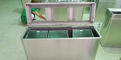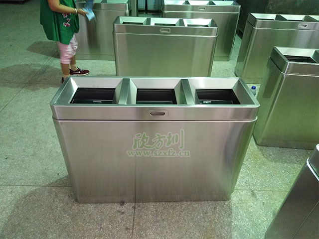 • 使用范圍:欣方圳三分類不銹鋼垃圾桶表面光滑、亮麗,是電梯口、寫字樓、學(xué)校、物業(yè)、賓館、酒店、機(jī)場、汽車站等擺放的首選。