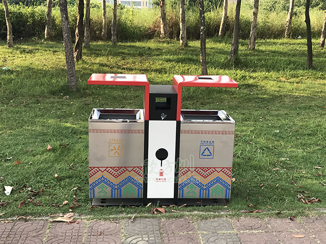 海南瓊海城管局選不銹鋼戶外垃圾桶為垃圾分類減負
