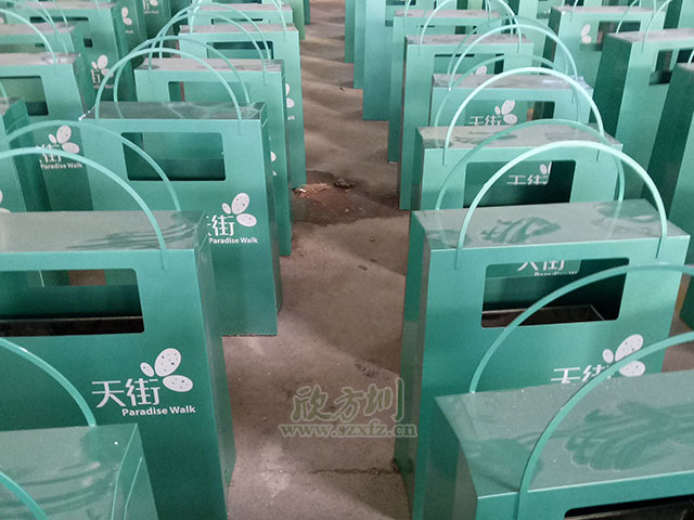 深圳天街購物街區定制手提袋鋼制垃圾桶