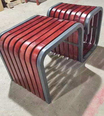 • 產品材質:戶外藝術造型鋼制環保休閑椅定制采用鋼結構與木條拼接而成,椅條由客戶定制可選進口實木(防腐木.紅胡桃.山樟木等)、還可選擇鋼結構、玻璃鋼、鐵藝、塑木等。