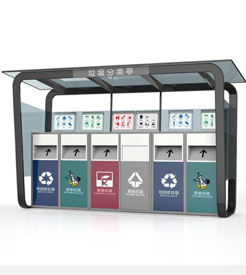 設(shè)有擋雨棚,可配備垃圾箱信息顯示屏、防水照明燈、廣告屏,進(jìn)行地面硬化。對社區(qū)玻金塑紙可回收物,其他垃圾,廚余垃圾,有害垃圾等生活垃圾定時(shí)定點(diǎn)投放收集.
