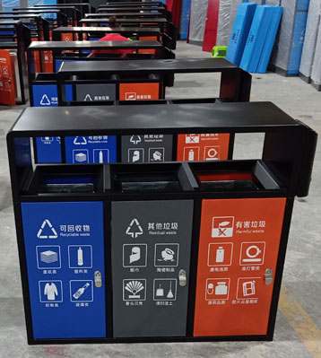 戶外三分類垃圾桶-戶外鋼制分類桶定制廠家