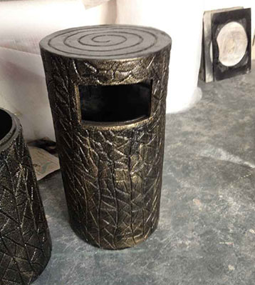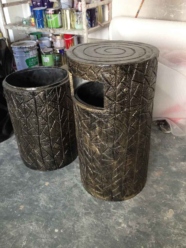 玻璃鋼垃圾桶桶身和內膽部分,采用高級玻璃鋼材質一次成型,經過打磨、除塵 、噴漆等一系列后期工藝然后出成品。