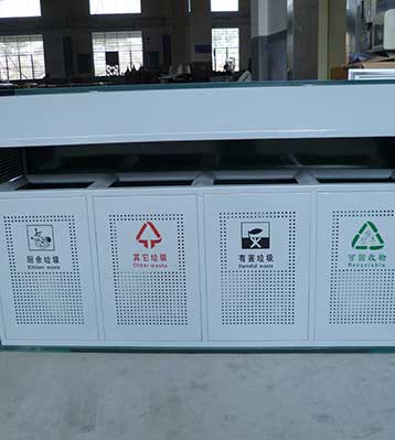 江西南昌園林綠化工程公司在室外分類(lèi)垃圾桶的選擇上,采購(gòu)的是當(dāng)下流行的可回收物、其他垃圾、廚余垃圾、有害垃圾組成的4分法垃圾收集容器。鍍鋅板...